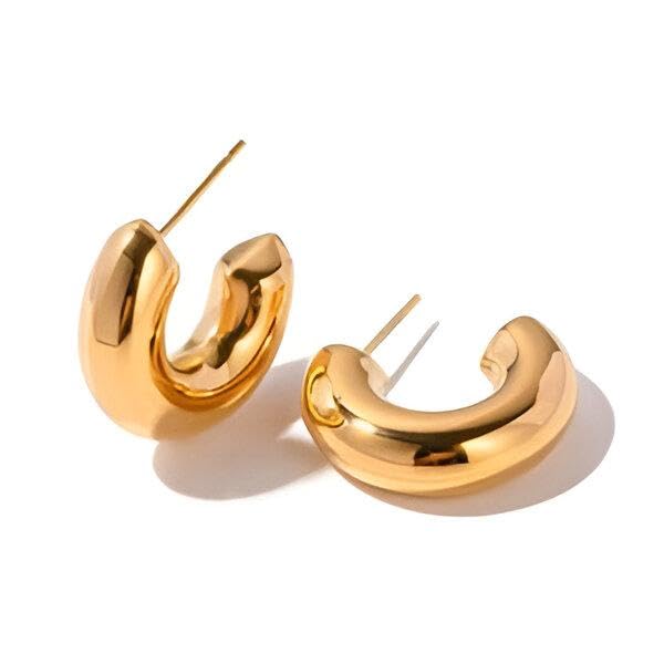 Generic - خاتم عصري على شكل حرف C - اقراط ذهبية لامعة وعريضة، تصميم انيق ومتين مصمم للنساء اللواتي يبحثن عن اكسسوارات مثيرة لا تتأثر بمرور الزمن