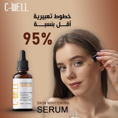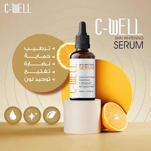 C-Well - سيروم فيتامين سي من سي-ويل، تركيبة متطورة تحتوي على الكولاجين، حمض الهيالورونيك، ومضادات الأكسدة، لتفتيح البشرة وترطيبها بعمق وتوحيد لونها، وحمايتها من الشيخوخة، ليمنحك إشراقة صحية ومتوهجة، 30 مل