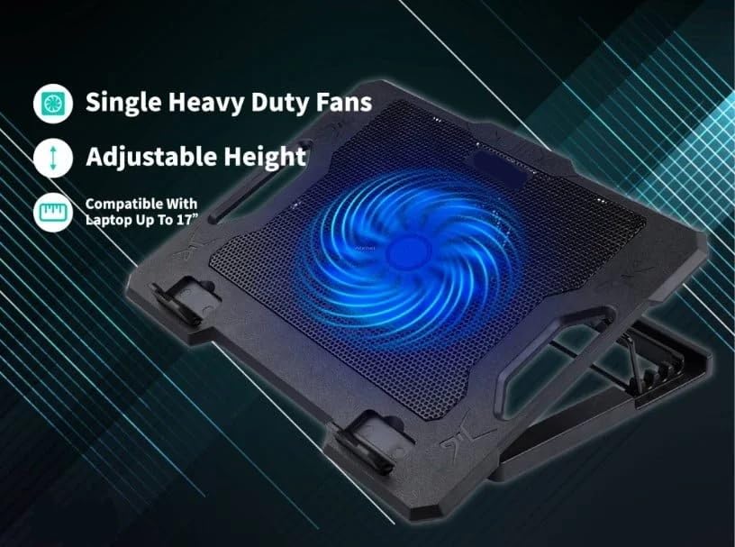 Generic - قاعدة تبريد للاب توب من كراش، مزودة بمروحة كبيرة وإضاءة ليد، متوافقة مع أجهزة يصل حجمها إلى 17 بوصة، وتتميز بخمس زوايا قابلة للتعديل لراحة وأداء فائق، C1000