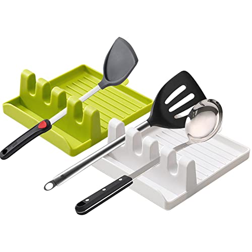 C100AE - مجموعة حامل ملاعق مع وسادة تنقيط، حامل ملاعق طبخ مقاوم للحرارة ومضاد للانزلاق وخالي من البيسفينول ايه، لتخزين أغطية الحلل، رف أدوات الطبخ، ملحقات المطبخ، من قطعتين C100AE