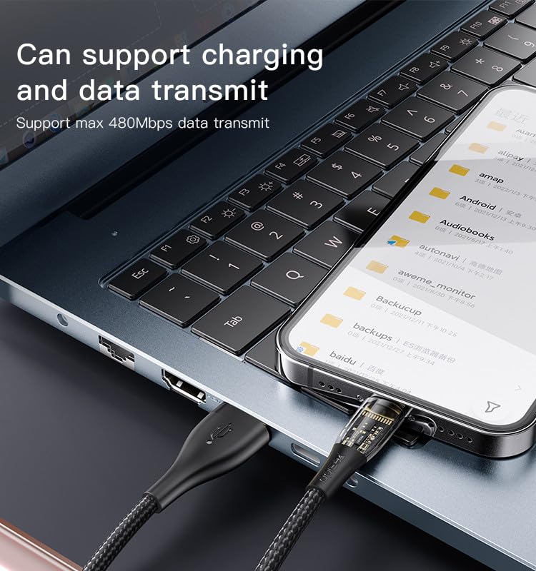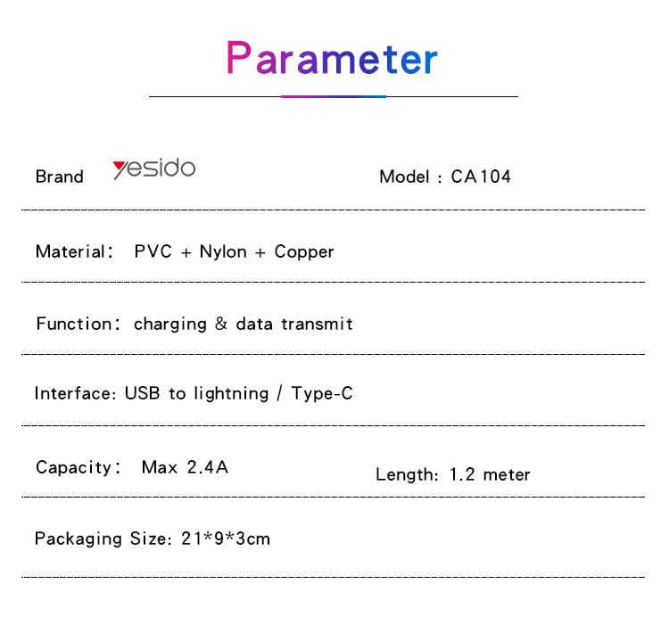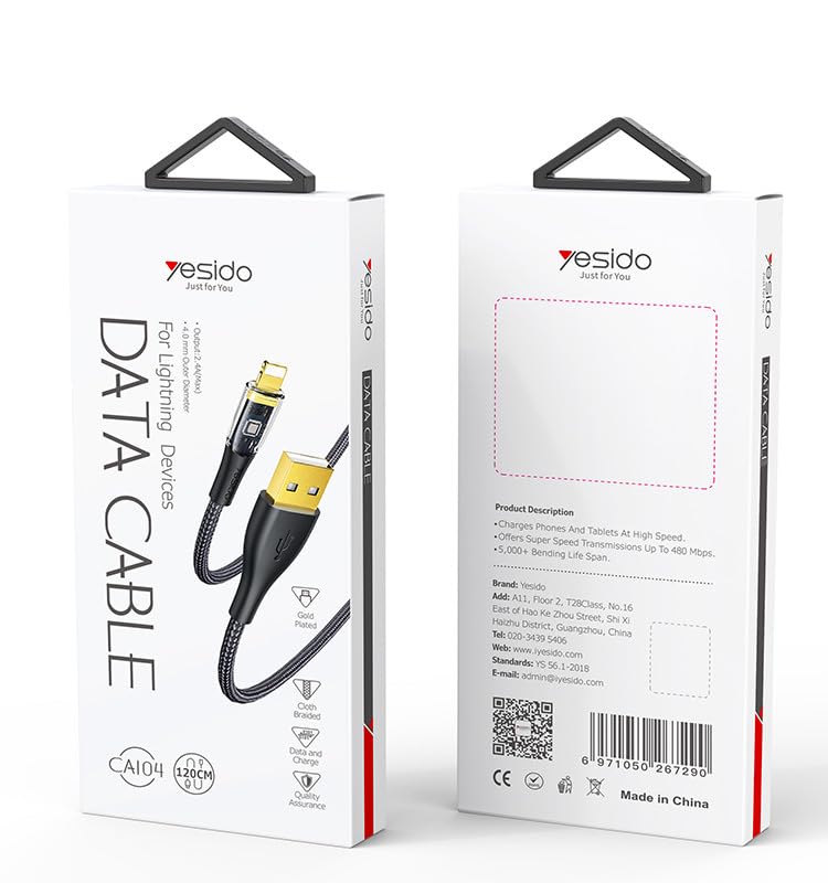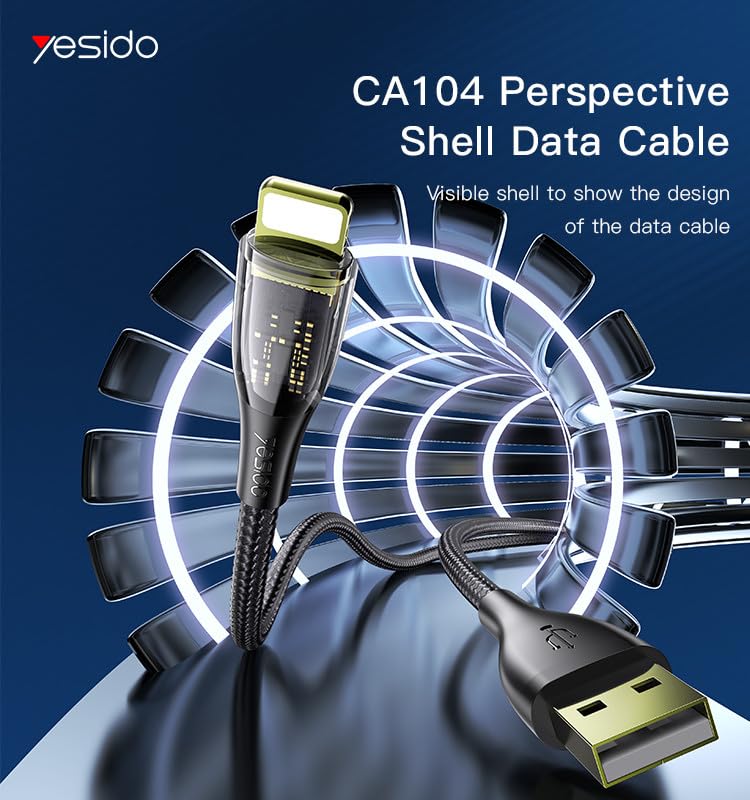 Yesido - كابل بيانات CA104 بطول 1.2 متر من USB إلى Lightning | كابل بيانات سريع الشحن من USB إلى Type-C، مضفر من النايلون، بقوة 2.4 أمبير