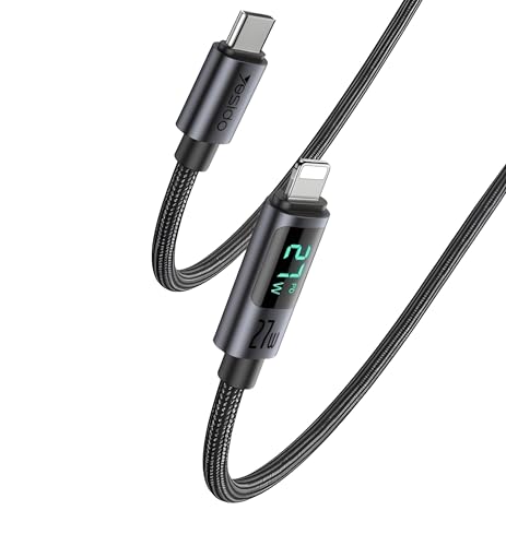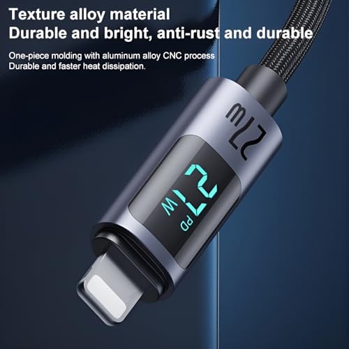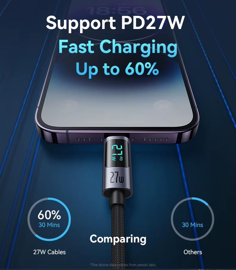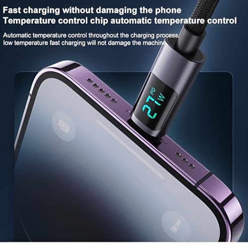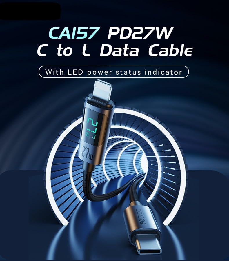 Generic - كابل شحن PD سريع بقوة 27 وات مع عرض رقمي - تصميم متين مضفر من القماش بطول1.2 متر- نقل البيانات بسرعات تصل إلى 90 ميجابايت/ثانية - موديل CA157