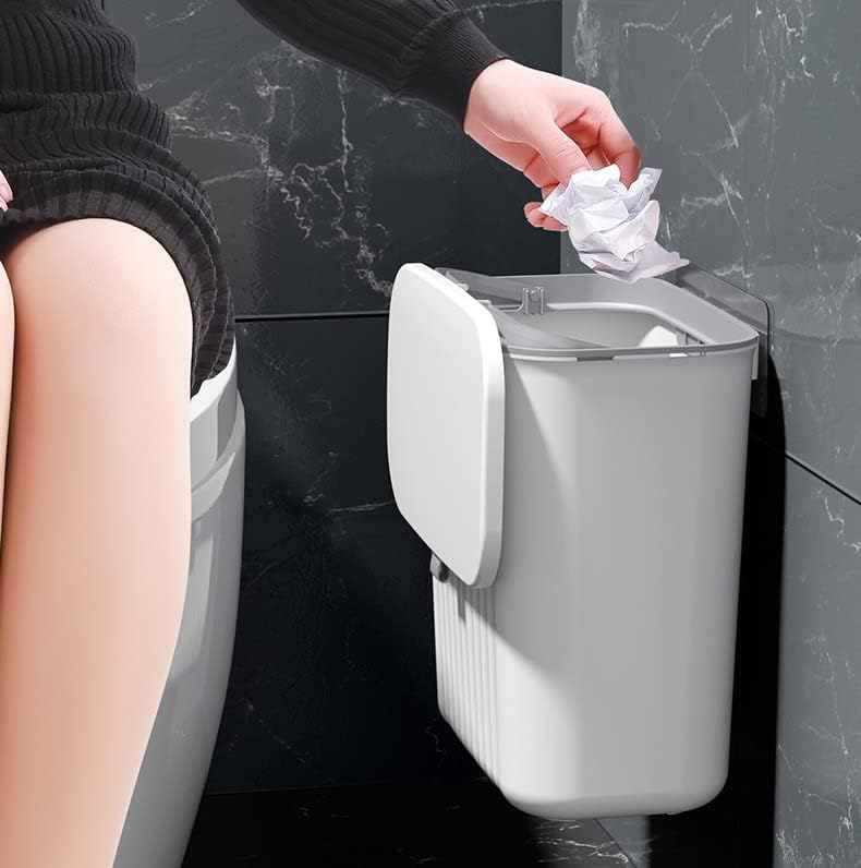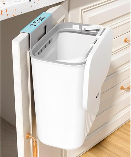 Generic - سلة مهملات معلقة على باب الخزانة مع غطاء قلاب، سلة قمامة صغيرة للمطبخ سهلة التنظيف، سلة مهملات مثبتة باللاصق، منظم منزلي ابيض رمادي 5 لتر
