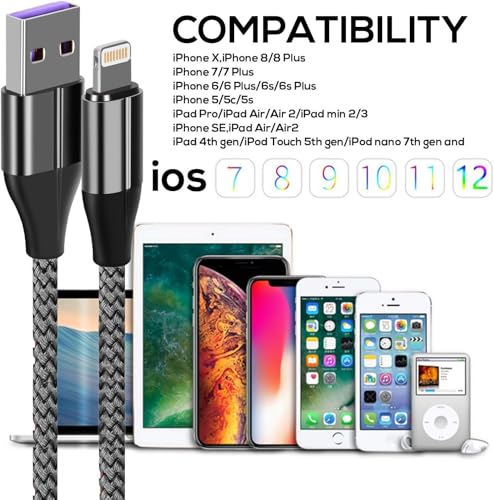 - الأجهزة المتوافقة: متوافق مع جميع كابل شاحن ايفون سريع الشحن يدعم IOS13/12/11/10. متوافق مع ايفون 11/11 برو/11 برو ماكس/XS ماكس/XS/XR/X/8 بلس/8/7 بلس/7/6s بلس/6s/5s/5c/5/ايباد برو/ايباد اير/اير 2/ايباد ميني/ميني 2/ميني 4/ايباد 4 الجيل العام/أي بود تاتش الجيل الخامس/ ايبود نانو الجيل السابع وبيتس بيل.