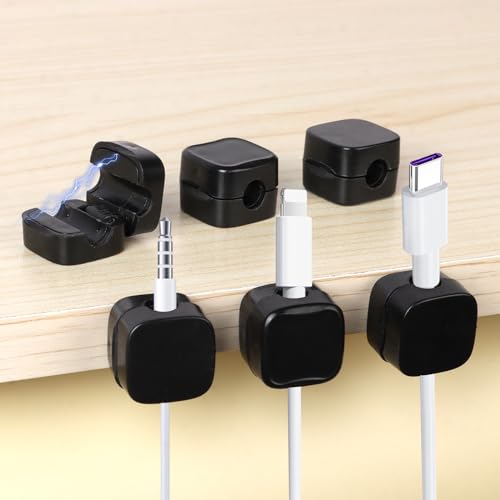 Niuoppy - مشابك كيبلات من 6 قطع، مشابك حامل الكابلات، ذاتية اللصق لتنظيم الاسلاك لتنظيم اسلاك كيبل شحن USB والمنازل والمكاتب وجدار المكتب (اسود)
