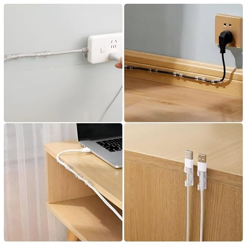 Generic - مشابك الكابلات منظم المكتب البلاستيكي اللاصق متعدد الأغراض حامل الأسلاك المتدلية مشابك إدارة الأسلاك للمنزل والمكتب باللون الشفاف (40)