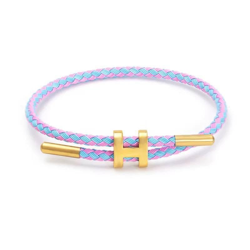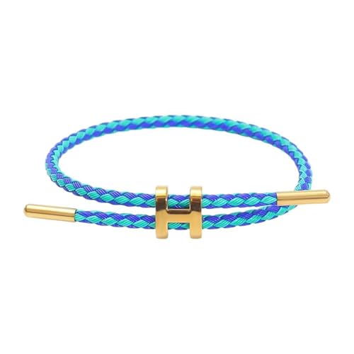 Generic - سوار بتصميم كيبل - سوار بسيط من ستيل التيتانيوم المطلي بالذهب عيار 18 قيراط مع مقاس قابل للتعديل، مقاوم للماء، مثالي للازواج الذين يبحثون عن أناقة عصرية بلون ازرق