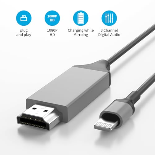 Oasisgalore - كابل لايتنينج إلى HDMI لتوصيل آيفون إلى التلفزيون، متوافق مع جهاز الاي باد