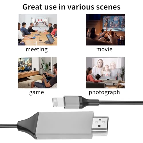 - توافق عالمي】مصمم لايفون/ايباد، كيبل ايفون إلى HDMI متوافق مع ايفون 14/14 بلس/14 برو/14 برو ماكس/13/13 برو/13 برو ماكس/13 برو ماكس/13 ميني/12/12 برو/12 برو ماكس/12 ميني/11/11 برو/11 برو ماكس، ايفون X/XR/XS/XS ماكس , ايفون 8 7 7 6 بلس، ايفون 5/5S/5C/SE 2020. يدعم نظام التشغيل اي او اس 14/13 ونظام التشغيل السابق. لا داعي للقلق بشأن تحديث النظام.