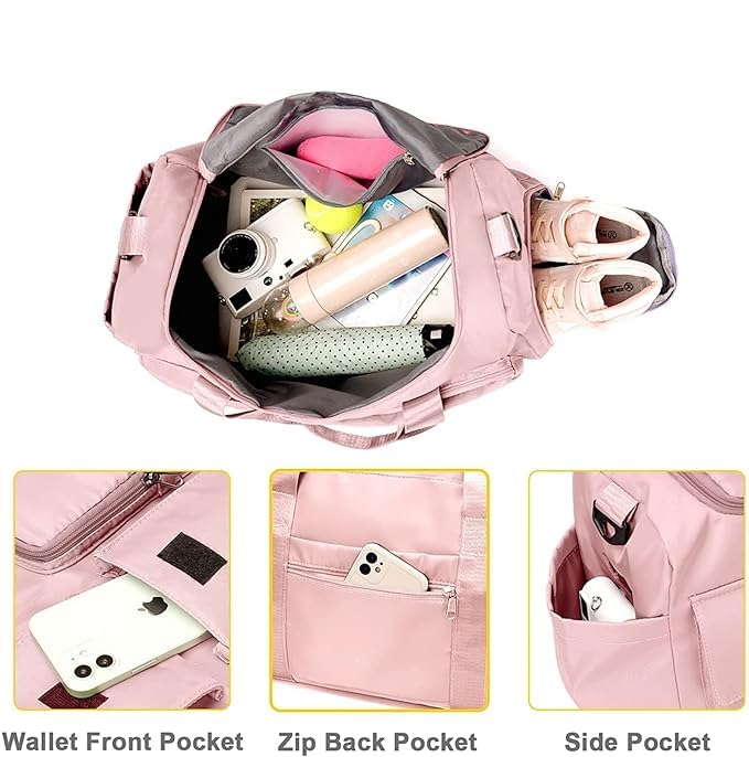 - شنطة سفر قابلة للتوسيع: شنطة دفل بحزام كتف مريح للسفر بمستويين من التوسع للنساء بعد التوسعة، سترتفع شنطة السفر القابلة للطي من 8.6 بوصة إلى 12.6 بوصة أو 16.5 بوصة. جيب يثبتها بشنطة السفر لتقليل عبء الرحلة. يمكنك وضع التذكرة والباسبور والموبايل في شنطة السفر.
