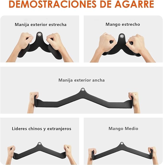 - تصميم متعدد الاستخدامات: مجموعة من 5 ملحقات كيبلات لرفوف الطاقة وآلات الكابلات، تتميز بتكوينات على شكل حرف V وقضيب مستقيم للتمارين المختلفة