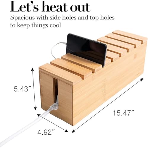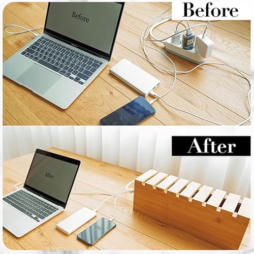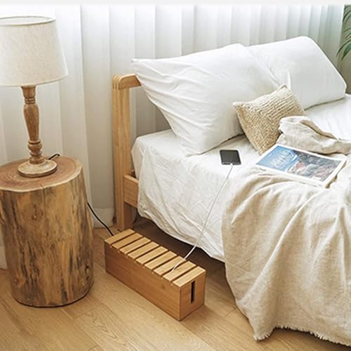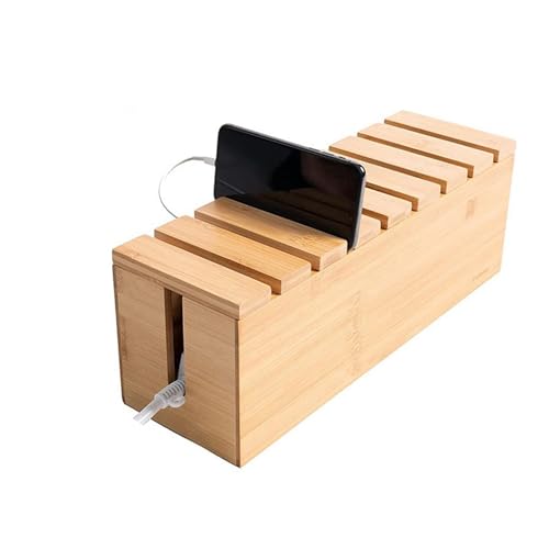 Ymcud - صندوق إدارة الكابلات مع غطاء، صندوق كابلات من الخيزران للأسلاك أو المشترك أو واقيات تدفق التيار لإخفاء الأسلاك السائبة خلف أجهزة التلفزيون وأجهزة الكمبيوتر المكتبية المنزلية والمكاتب ومراكز الترفيه