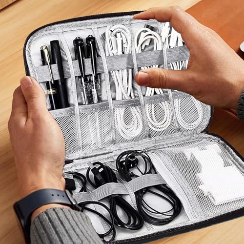 - محتويات العبوة: سوف تحصل على حقيبة واحدة لتنظيم الملحقات الإلكترونية، مصممة للحفاظ على جميع الكابلات والأدوات الخاصة بك منظمة بدقة وسهولة الوصول إليها