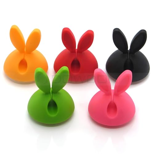 Generic - منظم الكابلات - حافظ على مساحة عملك مرتبة مع حامل الكابلات المصنوع من السيليكون على شكل أرنب لطيف متوفر بأربعة ألوان نابضة بالحياة للمكاتب والطاولات والجدران والسيارات متعدد الالوان (4)