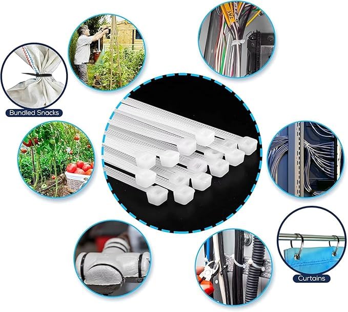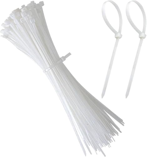 Generic - أربطة كابلات نايلون بيضاء شديدة التحمل، أشرطة تنظيم أسلاك ذاتية القفل، 100 قطعة، للمنزل والمكتب والحديقة والمشاريع الحرفية