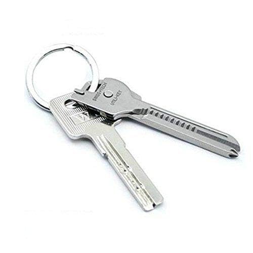 CABLEPELADO - سلسلة مفاتيح متعددة الوظائف 6 في 1 من الفولاذ المقاوم للصدأ من كابلبلادو، سلسلة مفاتيح متعددة الاستخدامات مناسبة للتخييم والمشي لمسافات طويلة، مفك صليبة ومفك فيليبس مسطح وفتاحة زجاجات وقطاعة أسلاك