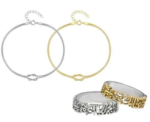 Generic - خاتم كابلز "لقد جمعنا الحب فمن يفرقنا"+ساور متطابقة للازواج، سوار ذهبي وفضي انيق بعقدة الحب ستانلس ستيل مطلي بالذهب عيار 18 قيراط، من سلسلة ، للعلاقات هدايا تعبر عن الحب