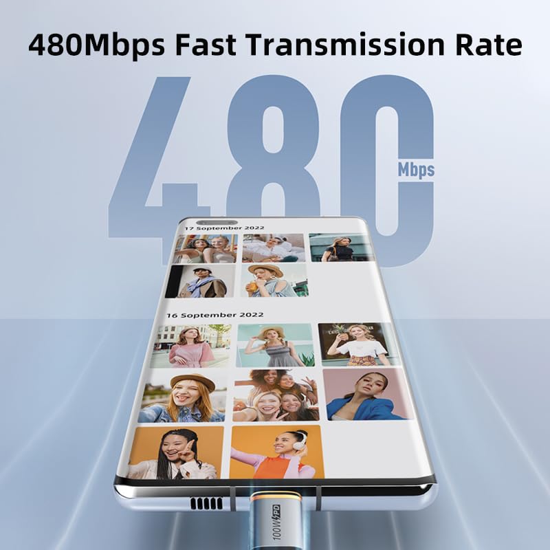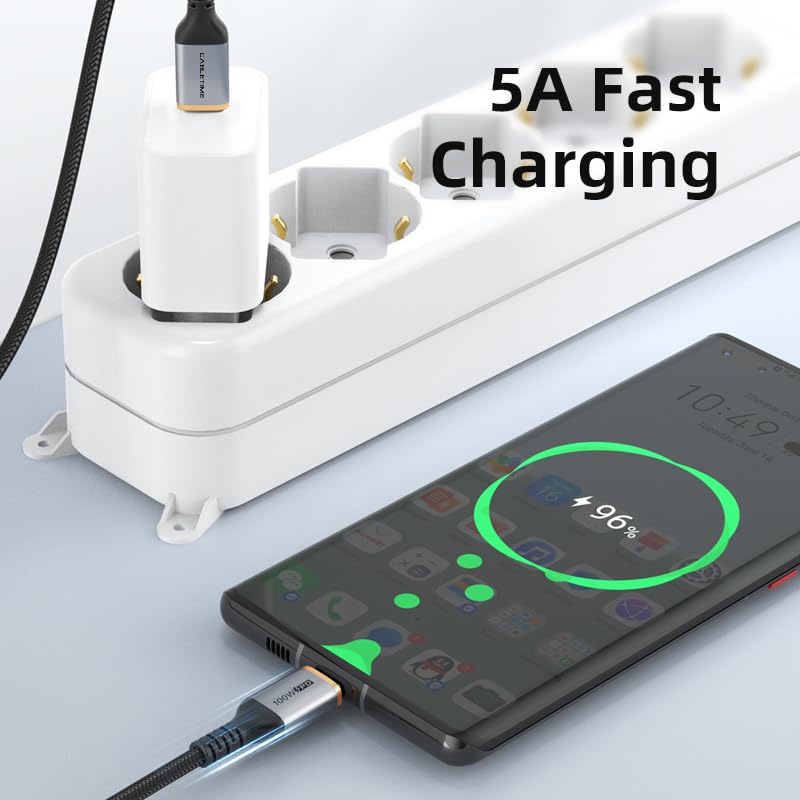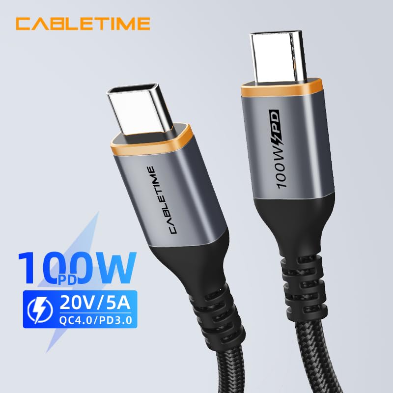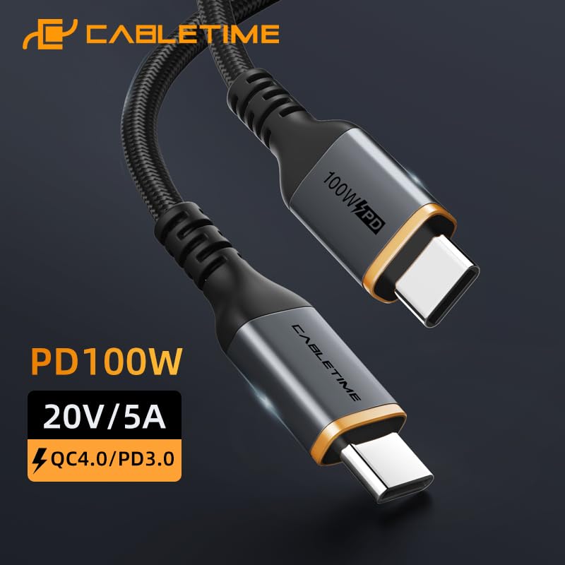 CABLETIME - كابل تايم كيبل USB-C للشحن السريع 100 واط 1 متر مغطى بالنايلون مع رقاقة اي ماركر 20 فولت/5 امبير يدعم QC4.0/PD3.0 متوافق RoHS2 ريتش USB-IF ضمان لمدة عامين لهاتف ذكي
