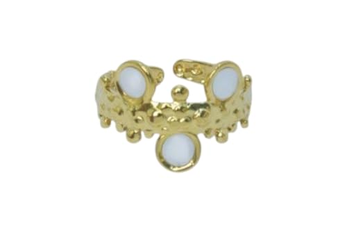 Generic - خاتم مفتوح من الستانلس ستيل بتصميم لؤلؤ كابوشون - ذهبي