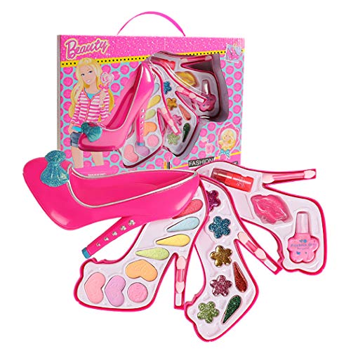 CACAZI - علبة مكياج للاطفال قابلة للغسل باليد، ألعاب تجميل إبداعية محمولة من ثلاث طبقات، مشابك شعر وطلاء أظافر بلاستيك ايه بي اس من كاكازي (اكريلونيتريل بوتادين ستايرين)