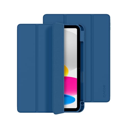 CACOE - جراب حماية لجهاز اي باد الجيل 10 مع حامل قلم 10.9 بوصة 2022 A2757/A2777 من كاكو، جراب خلفي رفيع للغاية وناعم من البولي يوريثين المقاوم للحرارة مع وظيفة الحامل، لون أزرق بحري