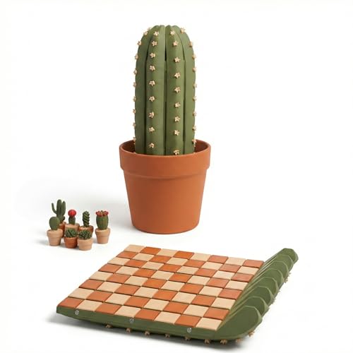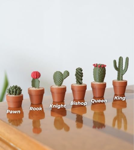 - 🌵 طقم شطرنج في هيئة ديكور: توقف عن إخفاء ألعابك اللوحية! تم تصميم هذا الطقم ليبدو تماماً مثل نبات صبار أنيق موضوع في وعاء من الفخار. يعمل هذا الطقم كديكور منزلي عصري يمكنك تركه على طاولة القهوة، مما يجعل من السهل بدء اللعبة في أي وقت.