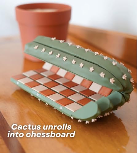 Generic - شطرنج ولعبة داما صبار مغناطيسية مع لوحة قابلة للطي ووعاء تخزين، لعبة لوحية استراتيجية فريدة بتصميم نباتات عصارية مطبوعة بتقنية ثلاثية الأبعاد بطابع، ديكور منزلي مبتكر للبالغين من كاكت تشيس