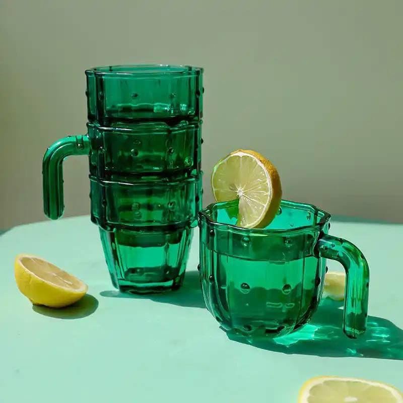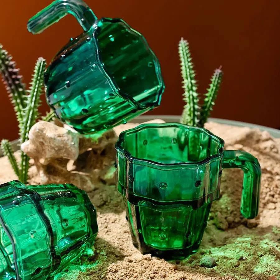 - أكواب زجاج بتصميم عتيق على شكل صبار مبتكر قابلة للتكديس ورائعة للقهوة والعصير من ايجل شوب.