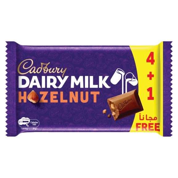 Cadbury - قالب شوكولاتة بالبندق ديري ميلك، عبوة اقتصادية (4+1 مجانًا) (150 جرام) من كادبوري