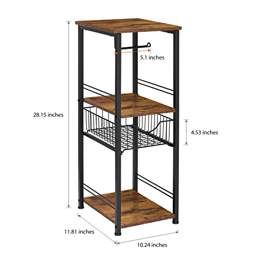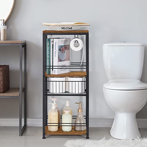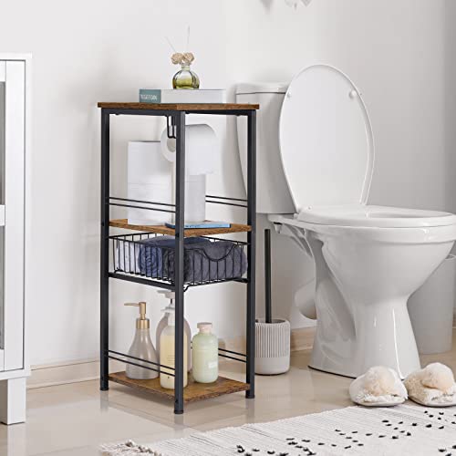 CADUKE - رف تخزين مناشف الحمام منظم خزانة قائم من 3 طبقات مع شماعة الورق متعدد الاغراض للحمام سلة للتواليت بني