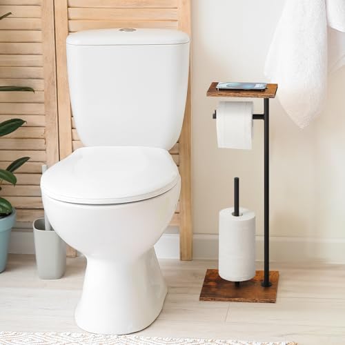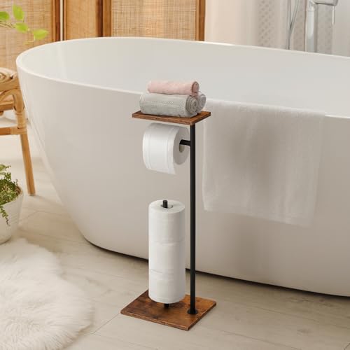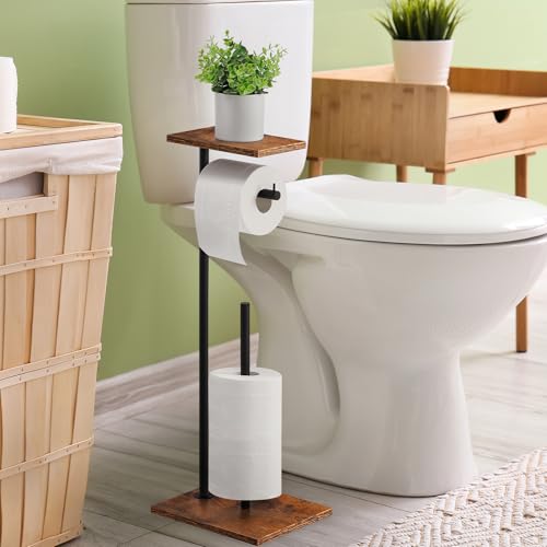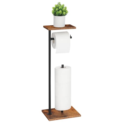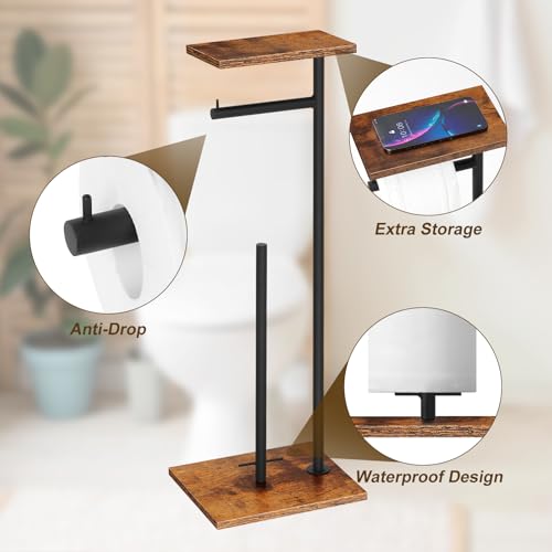 CADUKE - كادوك حامل ورق تواليت قائم مع رف علوي - حامل مناديل تواليت من الستانلس ستيل لـ 4 بكرات احتياطية - حامل ورق التواليت لورق التواليت وملحقاته (بني)