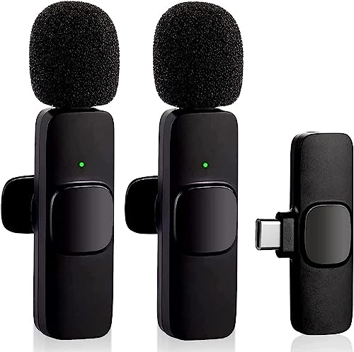 CAERUS - ميكروفون لافالير لاسلكي للجوال من النوع سي، ميكروفون لاسلكي بخاصية التوصيل والتشغيل مع 2 ميكروفون لتسجيل الفيديو عبر جوالات اندرويد USB-C والمقابلات والمدونات والمزامنة التلقائية وتقليل الضوضاء، أحادى