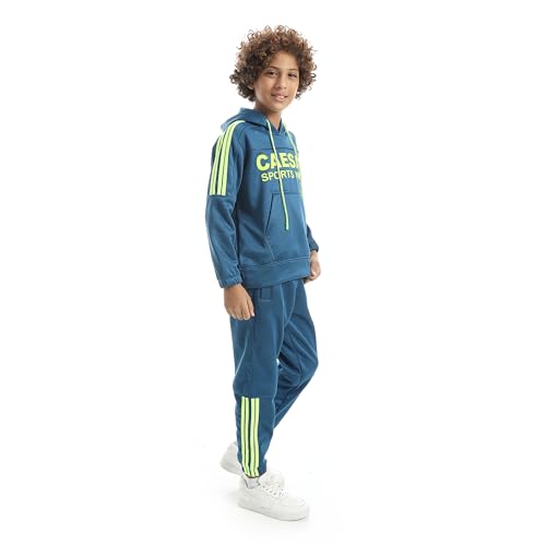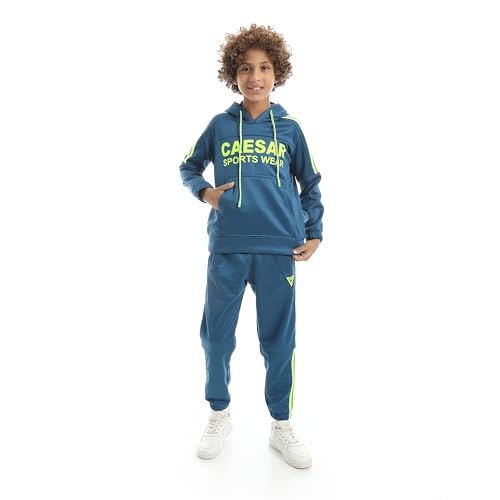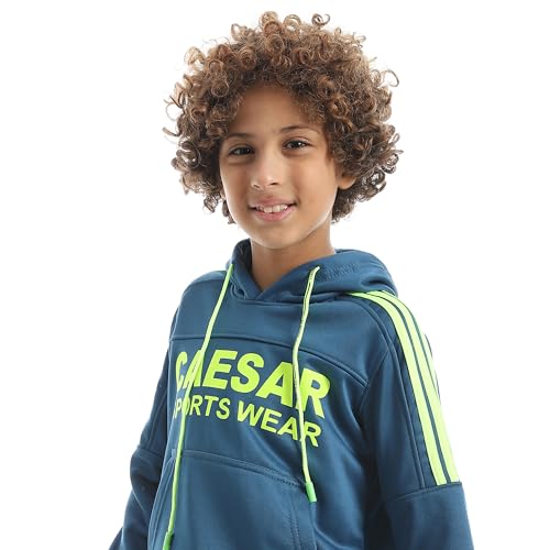 CAESAR - سيزر - بلوفر صوف للأولاد والنساء برقبة دائرية وتطريز على الصدر، بدلة رياضية شتوية للأولاد مع بطانة قطيفة على الظهر بتصميم 4 خطوط وطباعة على الصدر من سيزر