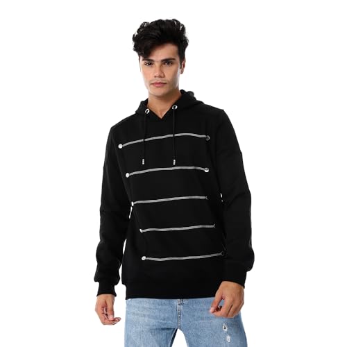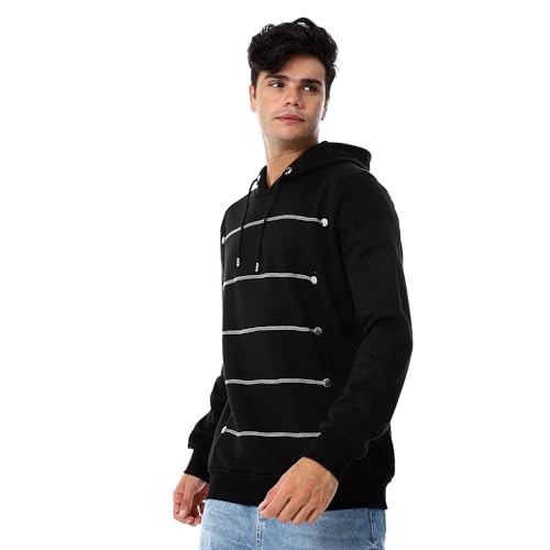 CAESAR - سيزر هودي مغلق للرجال مع ازرار فضية - مزيج القطن .