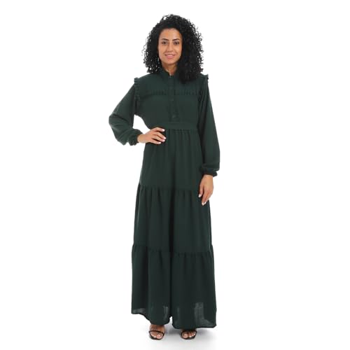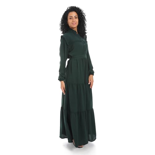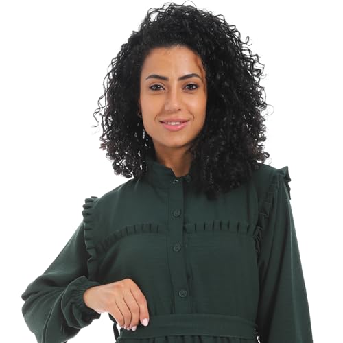 Cesar - فستان للنساء بحزام عند الخصر وأكمام طويلة من سيزر، لون أخضر غامق، مقاس لارج
