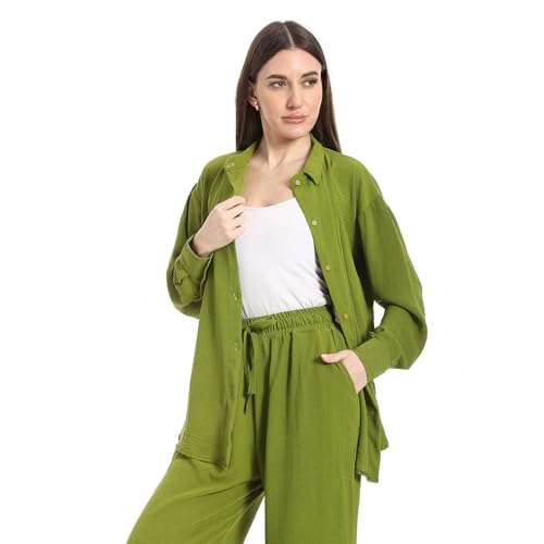 Cesar - طقم للنساء من قطعتين من سيزار، بدلة مفتوحة من الأمام بأزرار، أخضر، اكس لارج