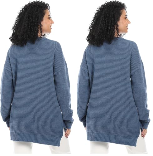 Cesar - بلوفر صوف برقبة طويلة بفتحة رقبة على شكل V للنساء من سيزر، أزرق، مقاس واحد يناسب الجميع (طقم من قطعتين)