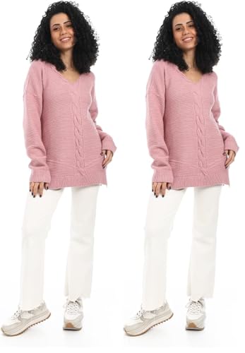 Cesar - بلوفر صوف طويل برقبة V للنساء من سيزر، لون كشمير، مقاس واحد يناسب الجميع، (عبوة من قطعتين)