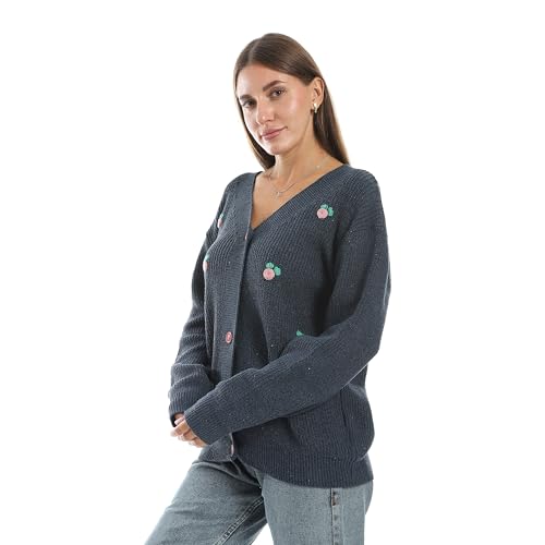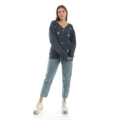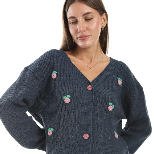 CAESAR - سيزر - كارديجان صوف قصير للنساء مع زهور وأزرار في الأمام من سيزر