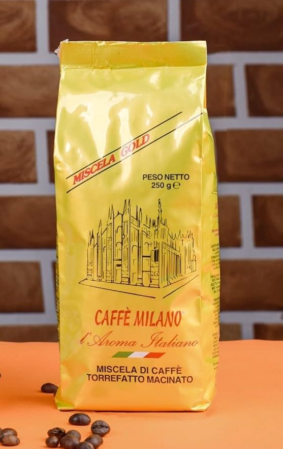 CAFFÈ MILANO - قهوة من كافيه ميلانو مطحونة في كيس من حبوب القهوة بتحميص متوسط، 250 جم، عبوة واحدة، خليط 80% ارابيكا و20% ربوستا