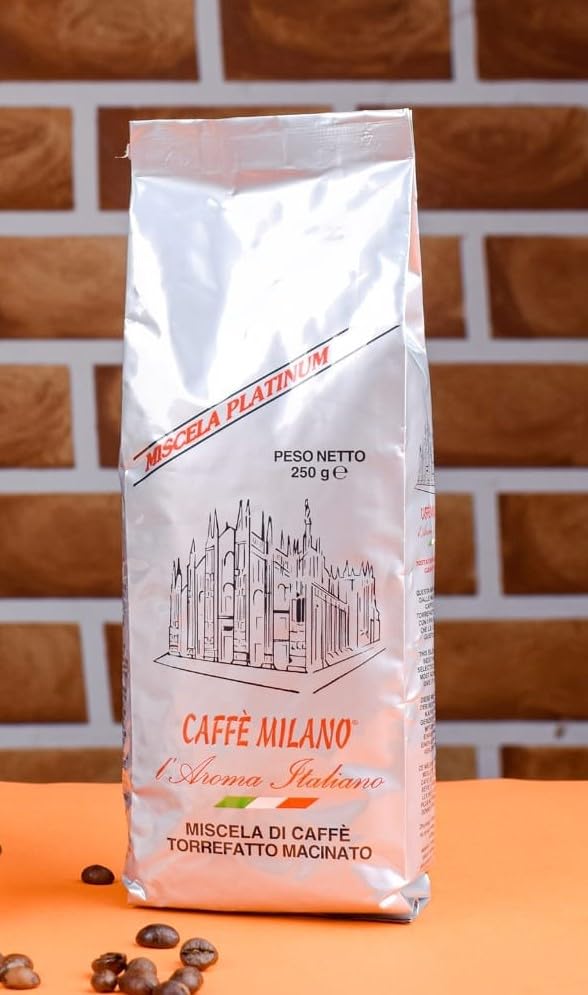 CAFFÈ MILANO - قهوة اسبرسو مطحونة من ميلانو 250 جرام (بلاتنيوم 100% ارابيكا)، كيس