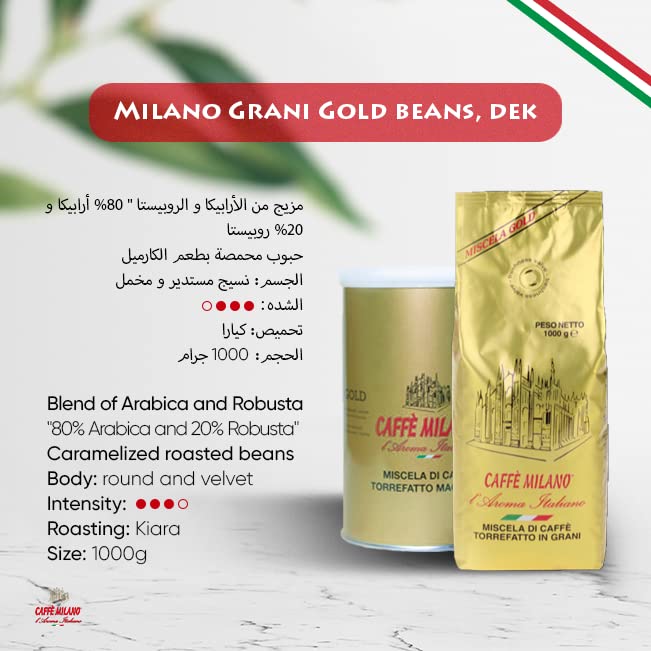 CAFFÈ MILANO - حبوب قهوة ايطالية من كافيه ميلانو لون ذهبي 80 20، كيس