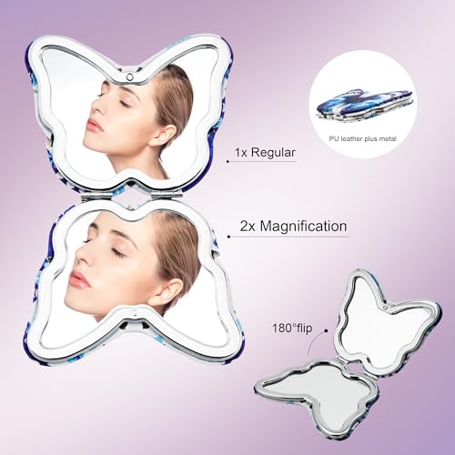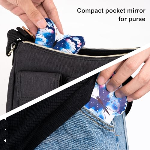 CAIRIAC - سياريك مراة صغيرة على شكل فراشة، مراة صغيرة لطيفة قابلة للطي على شكل فراشة، مراة مكياج محمولة للسفر للحقيبة، مراة مستحضرات تجميل مزدوجة الجوانب للنساء، هدية لمحبي الفراشة (متعدد الالوان )