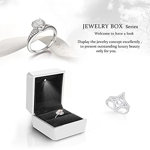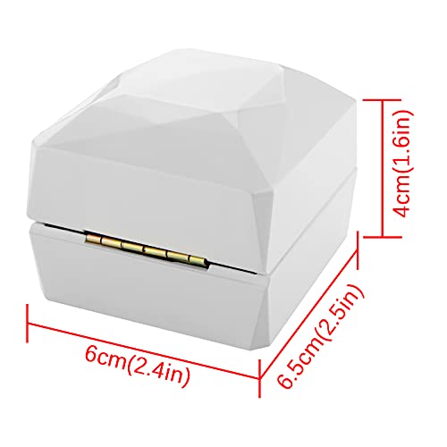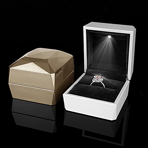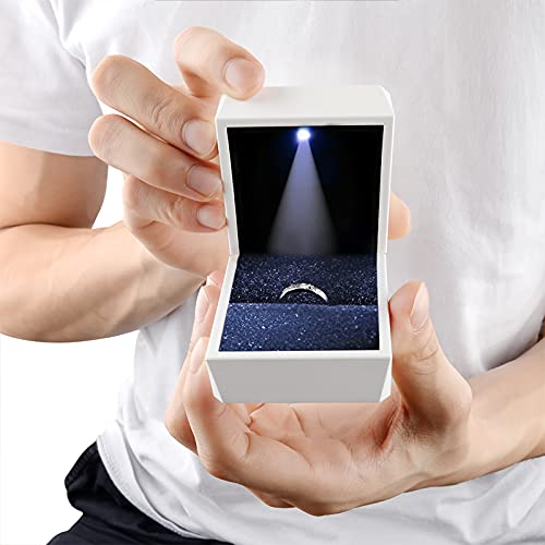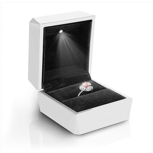CAIRIAC - علبة خاتم خطوبة مزود بإضاءة ليد من القطيفة للحلقان والخواتم لعرض وتخزين المجوهرات لعروض الخطوبة والزفاف وأعياد الميلاد وذكرى الزواج وعيد الحب من سياريك، لون أبيض