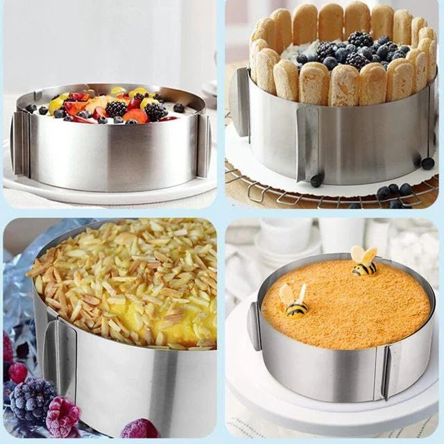 Generic - اطار تحديد الكعك والتورتة مستدير يمكن فتح قطره حتى 30 سم سهل الفتح والغلق ارتفاع 10
