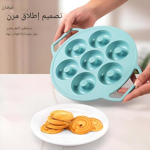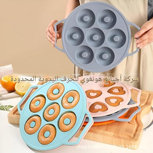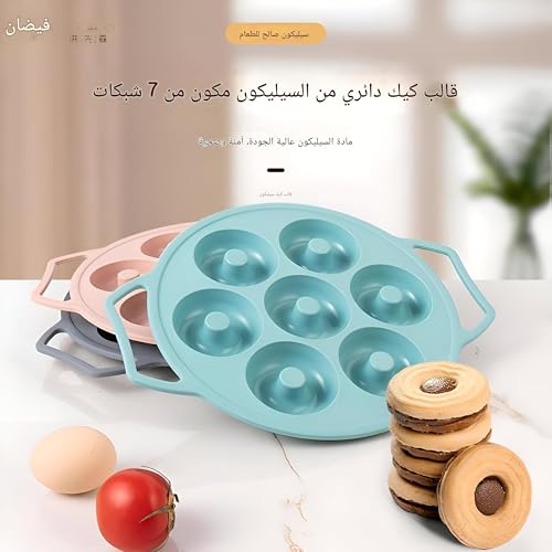 Generic - قالب كيك وبيجل - صينية دونات سيليكون مقاومة للالتصاق بـ 7 تجاويف، مثالية لخبز الدونات والبيجل والكيك، مناسبة للاستخدام في غسالة الأطباق، أداة مطبخ متعددة الألوان