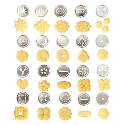 - محتويات العبوة: مكبس عجينة البسكويت، 20 قرص بأشكال مختلفة، 4 أطراف للتزيين ووصفات وصندوق ورقي قوي.