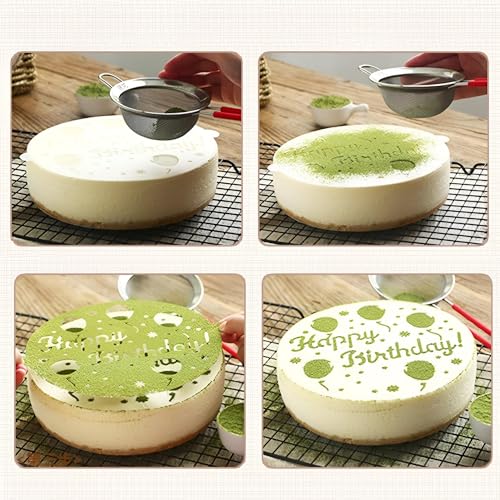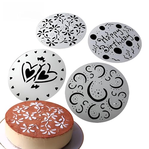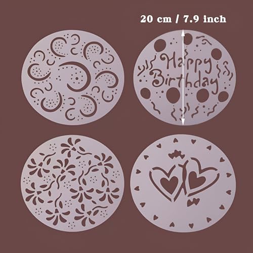 Generic - وش تزيين الكيك - 4 قطع أدوات قابلة لإعادة الاستخدام لسكر البودرة والكريمة وتصميمات الشوكولاتة، مثالية للاحتفالات مثل الذكرى السنوية، بلاستيك PVC متين، قطر 20 سم