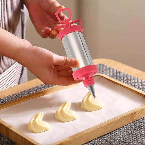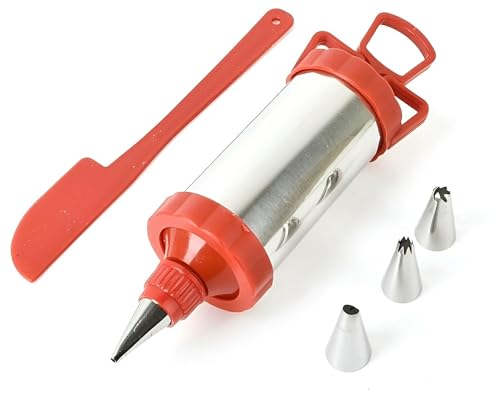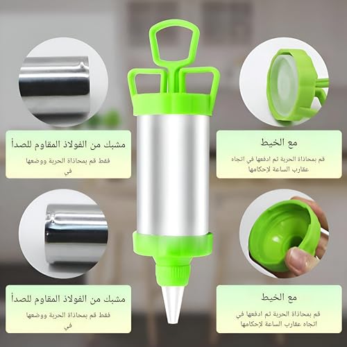 Generic - مجموعة تزيين الكيك أداة زينة معجنات بتصميم حقنة متعددة الوظائف من الفولاذ المقاوم للصدأ مع أربع فوهات فريدة، لتعزيز إبداعاتك في الخبز بسهولة وفن