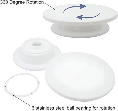 - بفضل تصميمها المبتكر، تدور حاملة الكيك هذه بسلاسة، مما يزيل أي تشتيت ناتج عن الحركات الصريرية أو المحرجة. بفضل محامل الكرات المصنوعة من الفولاذ المقاوم للصدأ المدمجة في القاعدة، يمكنك الاستمتاع بتجربة تزيين هادئة حيث تدور الحاملة بسهولة في أي اتجاه، مما يسمح بالدقة والسهولة عند وضع الصقيع أو الزخارف المعقدة على كعكتك.
